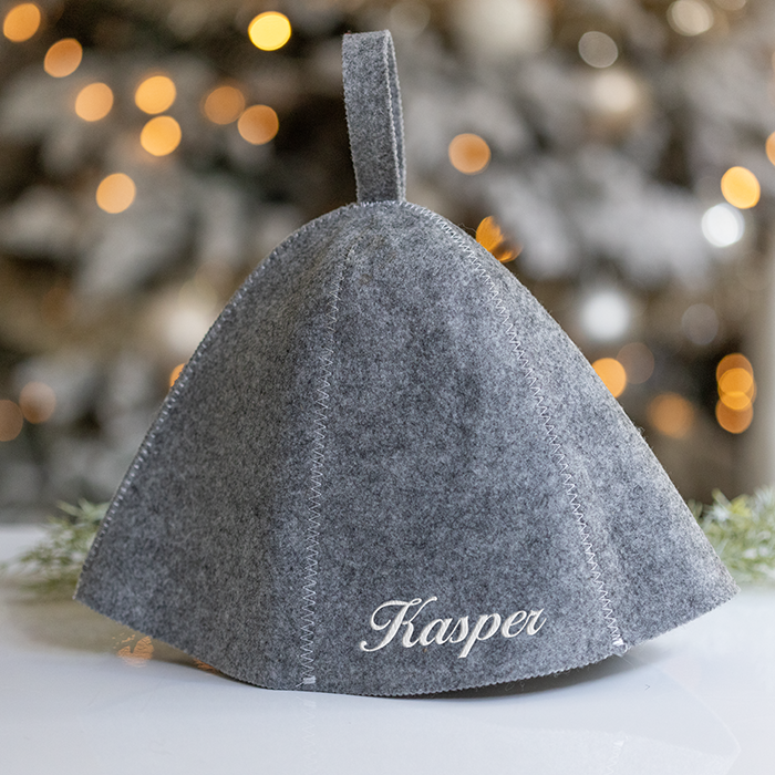 En traditionell och tidlös bastuhatt skyddar håret och hårbotten från bastuns hetta och passar även utmärkt för badtunna eller bubbelpool, där den håller huvudet varmt. Tack vare namnbrodyr blir detta en personlig gåva eller en trevlig present att ta med till exempel till stugan.