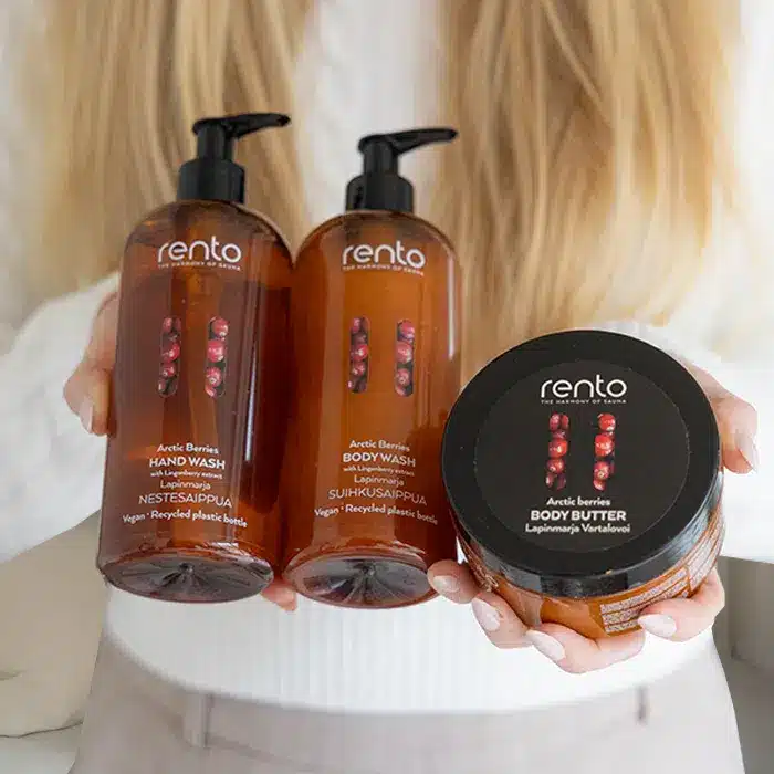 Setet innehåller dessutom högkvalitativa finska Rento-saunaprodukter.