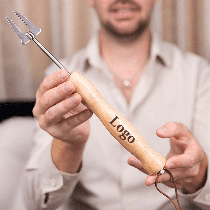 En korvpinne är en mycket praktisk kundgåva, profilprodukt eller reklampresent. Den är kompakt i storleken och kan fällas ut till hela 80 cm. Med läderremmen kan pinnen enkelt hängas på en krok eller fästas i ryggsäcken.