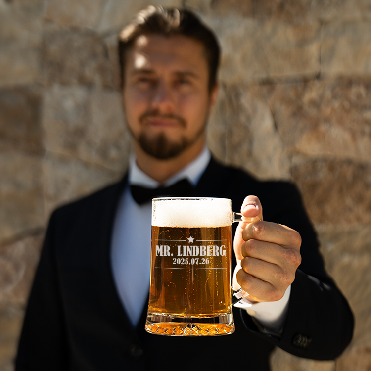 Vad skulle kunna vara en roligare morgongåva än en ölsejdel med personlig gravyr? En graverad ölsejdel blir ett fint minne, eftersom gravyren är beständig och inte slits bort med tiden.​ Sejdeln rymmer 60 cl och tål maskindisk.​