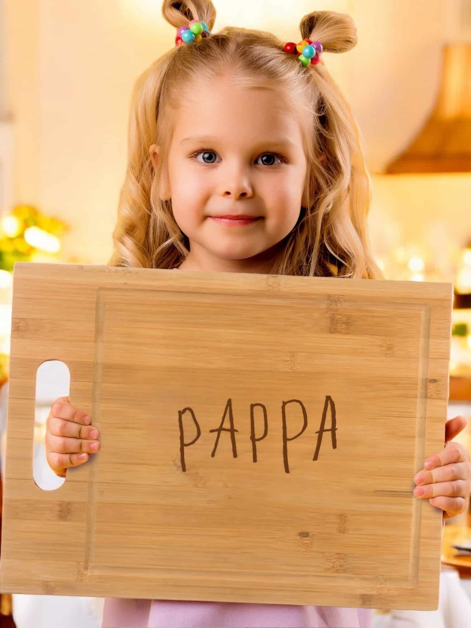 Skärbrädan har en stor graveringsyta, så det finns plats för hela familjens hälsningar till pappa.