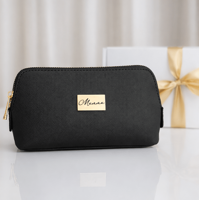 En stilren sminkväska med en gyllene namnskylt är en underbar present till mamma, som garanterat kommer till användning. Detta är en fantastisk personlig gåva till mors dag eller födelsedagen.