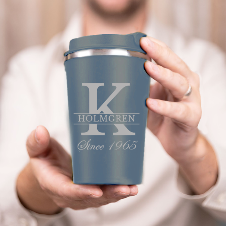 Termosmugg med namn och initial ingraverad är en personlig och praktisk presentidé. Termosmuggen är tillverkad av högkvalitativt rostfritt stål, vilket garanterar den bästa användarupplevelsen och produktens hållbarhet. Tack vare termomuggens dubbla väggar håller den temperaturen på både varma och kalla drycker väl.