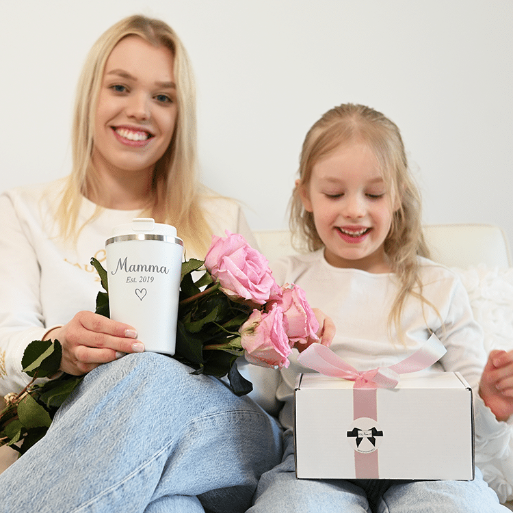 Vi levererar termosmuggen med gravyr i en vacker presentförpackning. På så sätt kan du genast ge presenten till mamma, utan extra ansträngning.