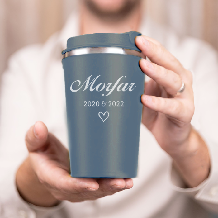 En termosmugg med text är en utmärkt presentidé till pappa. Det bästa är att du själv kan välja de ord som glädjer din pappa mest. Resetermosmuggen är tillverkad av högkvalitativt rostfritt stål, vilket garanterar den bästa användarupplevelsen och god hållbarhet. Termosmuggen med gravyr levereras i en vacker presentförpackning, så presenten till pappa är genast redo att ges bort.