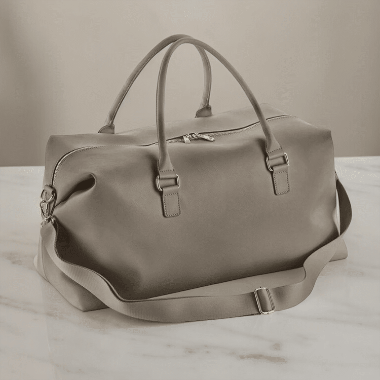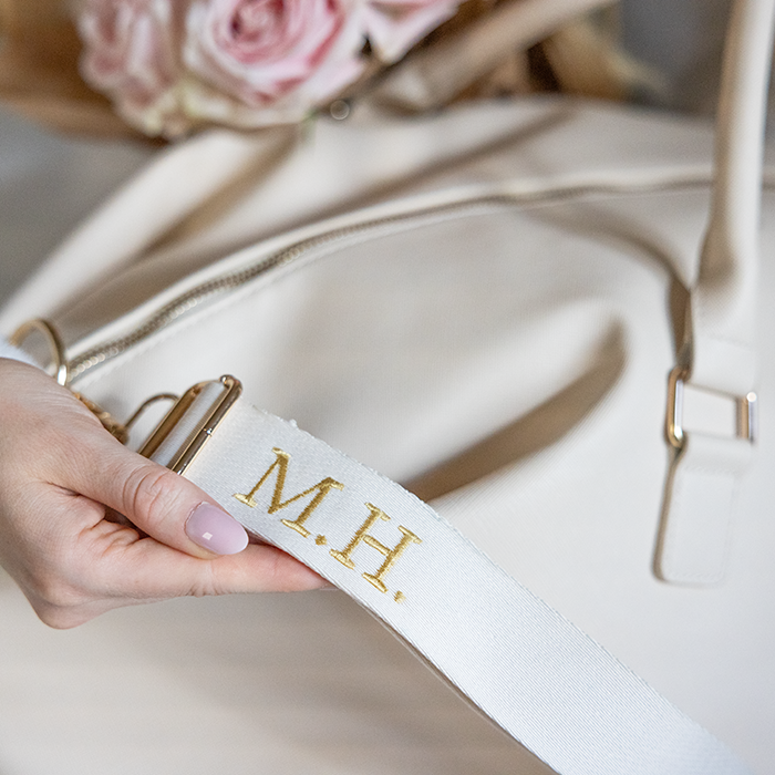 En lyxig och rymlig weekendbag med brodyr – perfekt för veckoslutsresor. Väskan broderas med initialer eller ett namn för en personlig touch. Detta är en elegant och praktisk presentidé till mamma, flickvännen, systern eller en nära vän – eller varför inte till dig själv?
